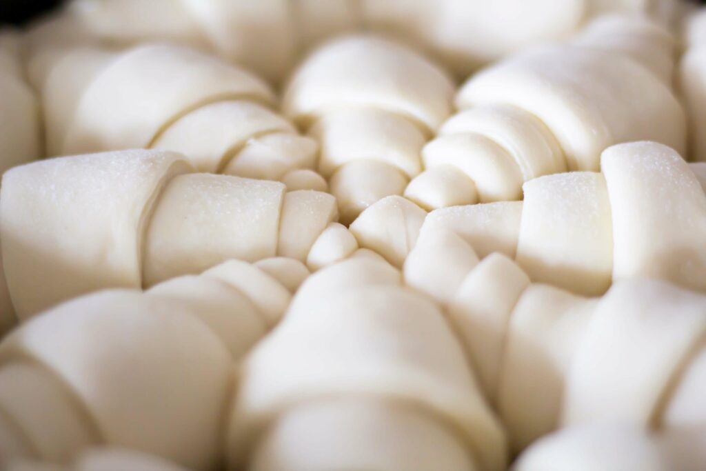 In order to create frozen dough, the prepared dough undergoes a blast freezing process. This dough is then stored at a temperature of -18°C until ready for use.
